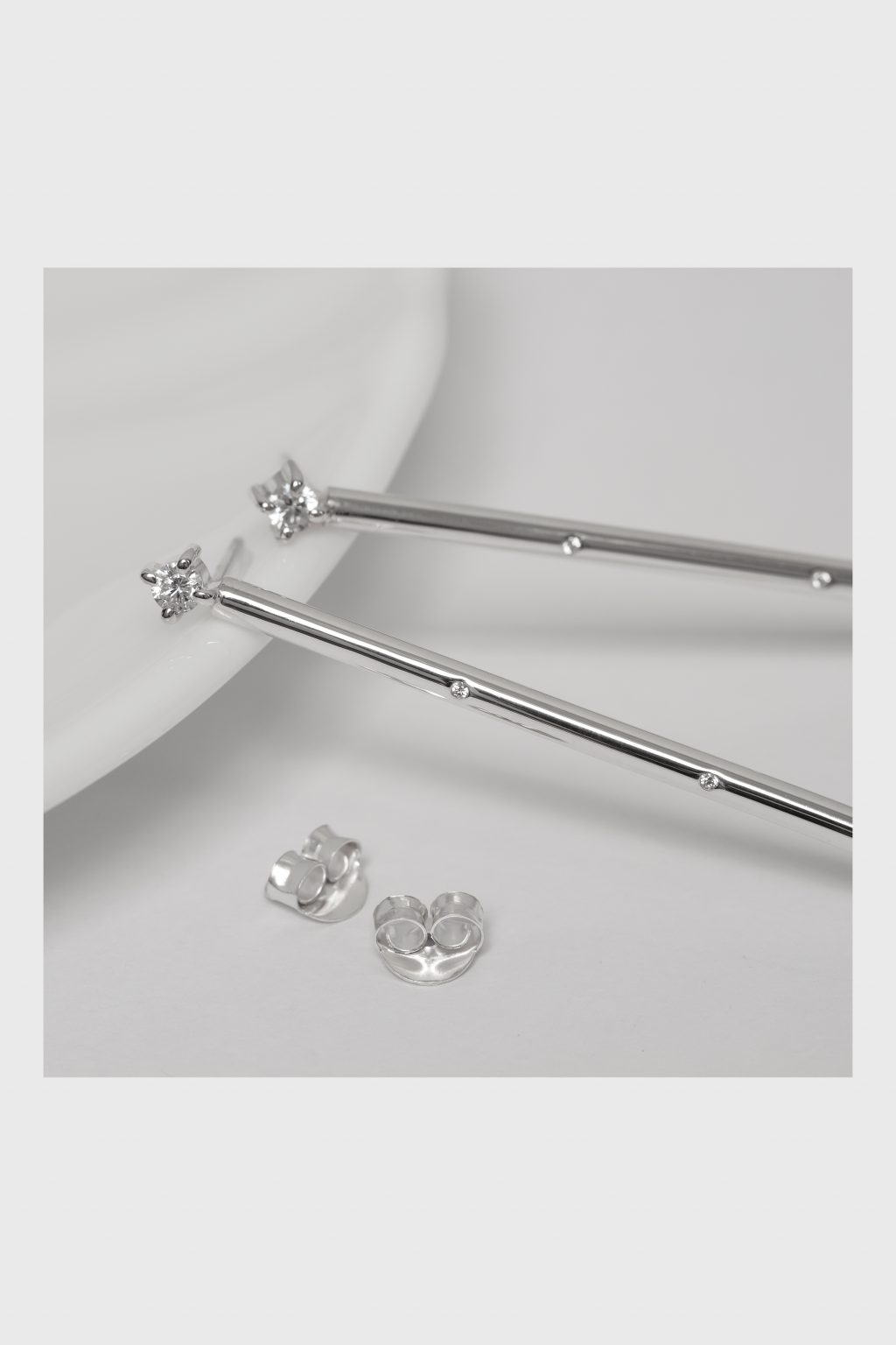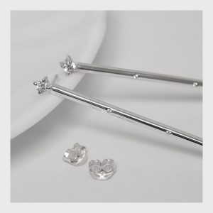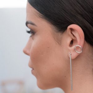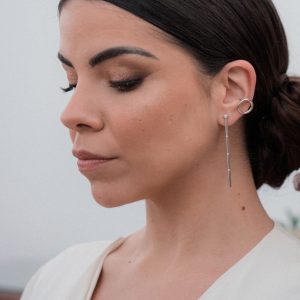 Los Pendientes Catalina nacen de un diseño creado por mi madre, que imaginó una línea depurada y brillante para iluminar el rostro con sutileza. Yo los elaboré a mano en plata de ley, incorporando pequeñas circonitas que aportan destellos delicados y un equilibrio perfecto entre minimalismo y luz.